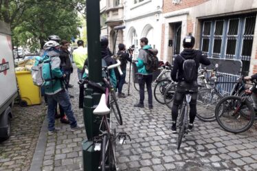 Le vendredi 10 mai, dix coursiers à vélo de Bruxelles et de Gand se sont rendus au siège de Deliveroo
