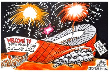 Le long de la promenade qui longe la baie de Doha, une grande horloge décompte les jours qui précèdent le
