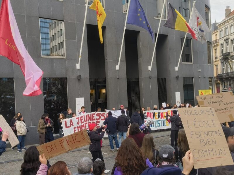 À Saint-Gilles, environ 150 élèves et membres du personnel de l’enseignement se sont rassemblés sur la place Morichar pour ensuite