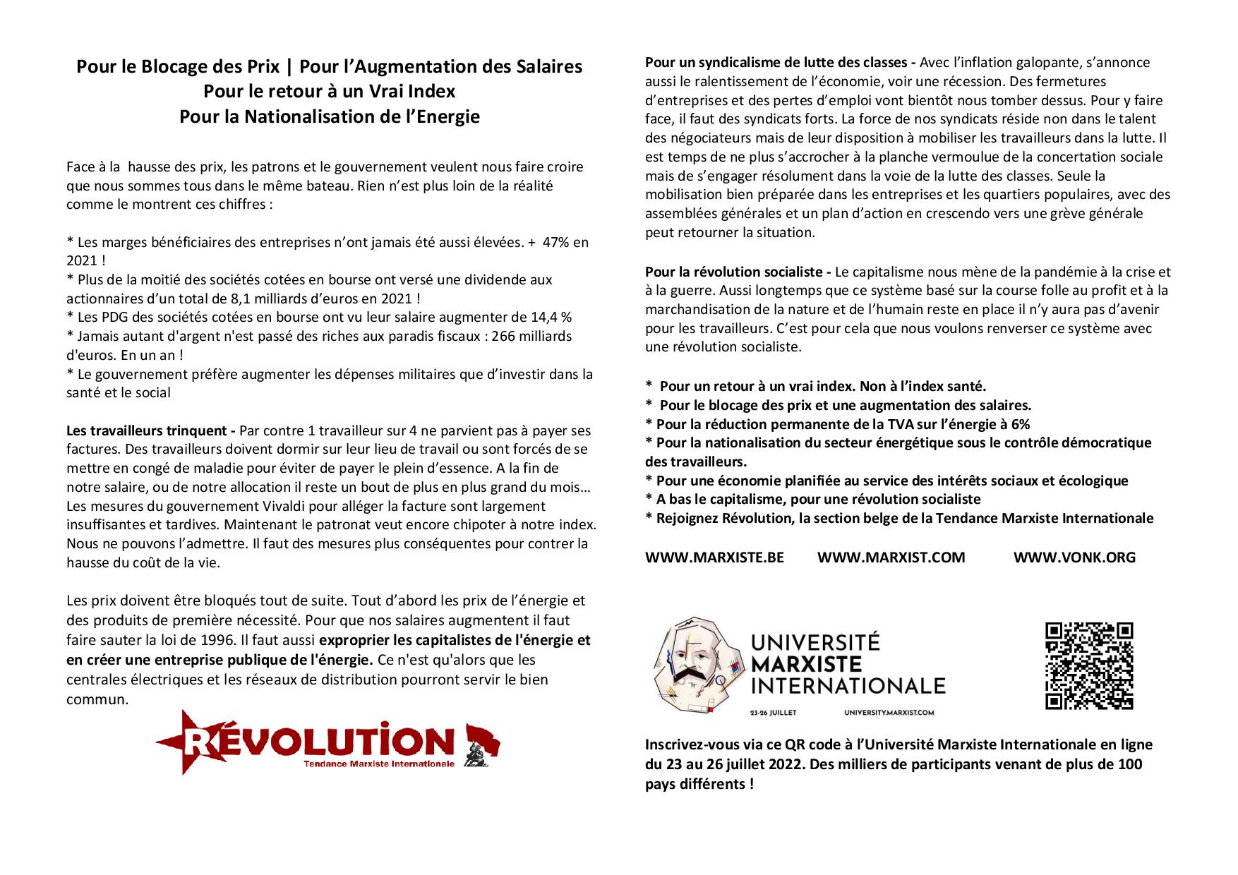 Lisez le tract que nous allons diffuser lors de la grande manifestation syndicale du 20 juin Face à la hausse des
