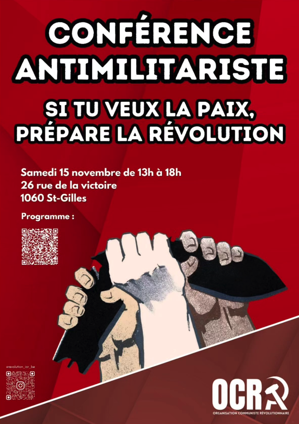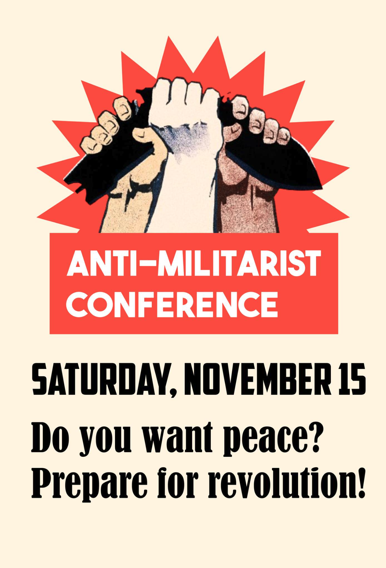 Nous invitons toutes les personnes qui souhaitent lutter contre la guerre, le militarisme et l'impérialisme à venir à notre conférence