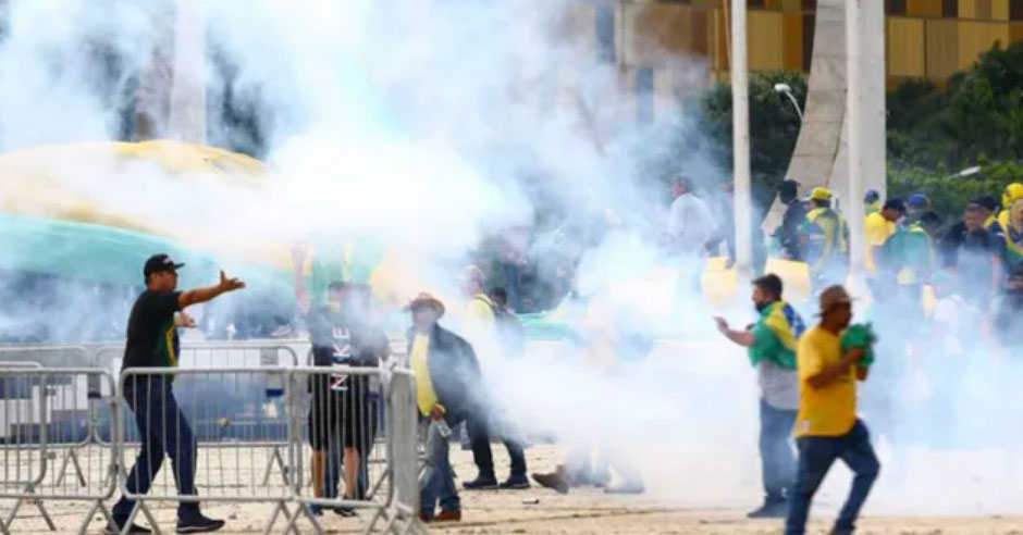 Il est évident que l’invasion de ces bâtiments n’a été possible que grâce à la complicité des forces de répression de l’Etat. La foule réactionnaire, qui a été transportée à Brasilia par près d’une centaine de bus, a même été escortée jusqu’à la Praça dos Três Poderes [Place des trois pouvoirs] par la police militaire du district fédéral de la capitale.