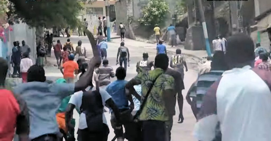 « Les membres du gang, dit-elle, sont venus à Debussy, qui se trouve sur la colline supérieure du quartier de Turgeau à Port-au-Prince. Et pour la première fois, la population ne l’a pas accepté… Ils ont commencé à riposter. Tous ceux qui avaient des armes et suffisamment de munitions ont commencé à tirer sur les gangs. La population est alors sortie avec des machettes, des pierres ou des bâtons de bois – tout ce qu’elle pouvait trouver pour riposter… Elle a commencé à poursuivre tous les bandits et les membres des gangs en bas de la colline, dans tous les endroits où ils se cachaient. »