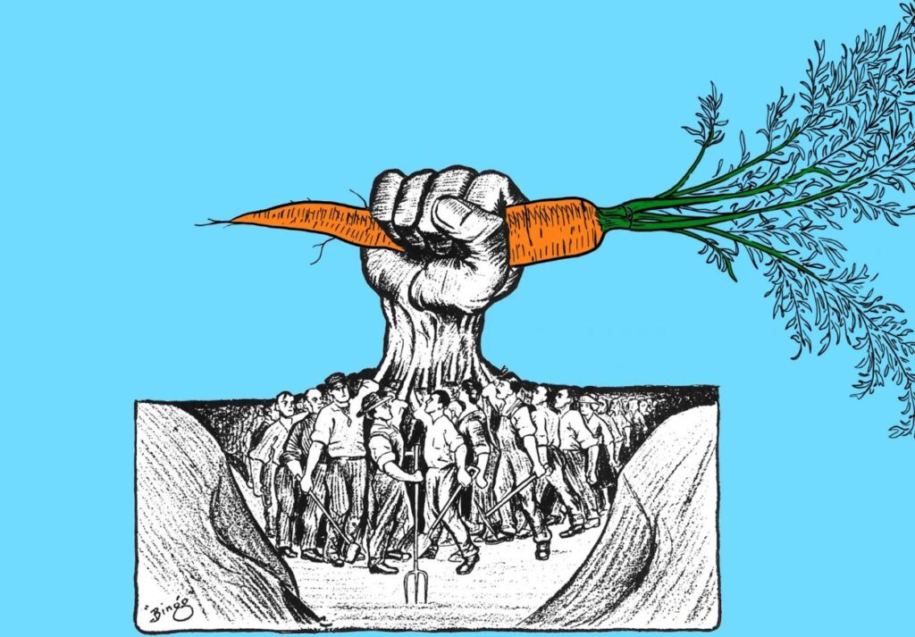 L’entraide est conçue comme un effort collectif d’un mouvement social pour améliorer les conditions de vie. Mais d’où viennent les ressources qui aident les gens ? Toute la richesse de la société provient du travail humain appliqué aux ressources naturelles de la terre. Sous le capitalisme, les travailleurs ne sont payés en salaires et avantages que pour une partie de la valeur qu’ils créent, tandis que la plus-value finit dans les poches des capitalistes.