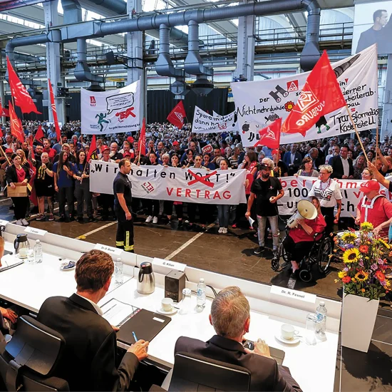 Nous voyons ici comment la bureaucratie se trouve entre le marteau et l’enclume. Elle aimerait bien éviter les licenciements massifs grâce à la magie du « dialogue social », mais elle est confrontée à une situation dans laquelle elle sait que des milliers d’emplois vont disparaître en raison de la grève des investissements de la part des capitalistes européens, et elle doit se défendre (ou faire semblant d’organiser une opposition).