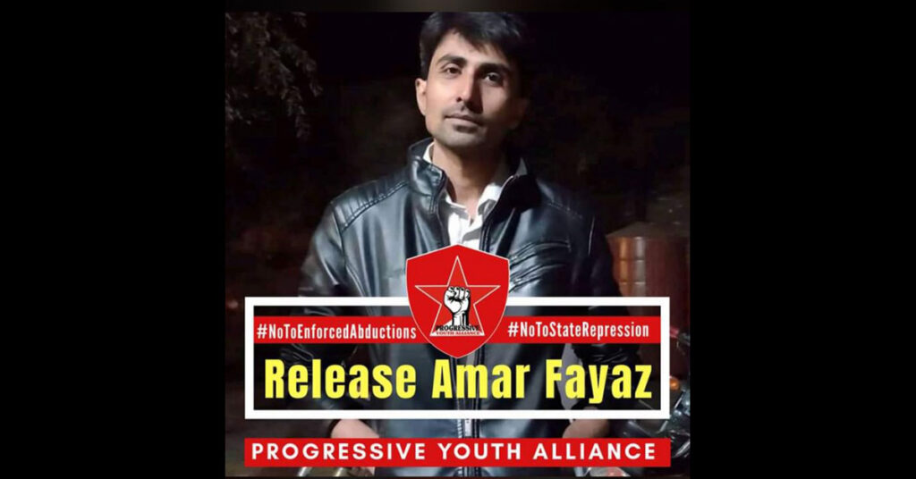 Le 8 novembre, vers 1h30 du matin, des hommes à bord de deux jeeps du même type de celles généralement utilisées par les services de sécurité pour les enlèvements, ainsi que trois voitures de police, ont enlevé le camarade Amar Fayaz à Jamshoro, dans le Sind. Il était assis près de la porte de la faculté de médecine Liaqat lorsque cet incident s’est produit. Depuis, nul ne sait où il se trouve. Nous appelons tous nos camarades et sympathisants à lutter pour sa libération.