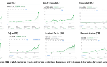 Après l’annonce des dirigeants européens d’augmenter conséquemment les budgets militaires, les entreprises occidentales d’armement ont gagné entre 15 et 30% de valorisation boursière en quelques jours, mais en réalité