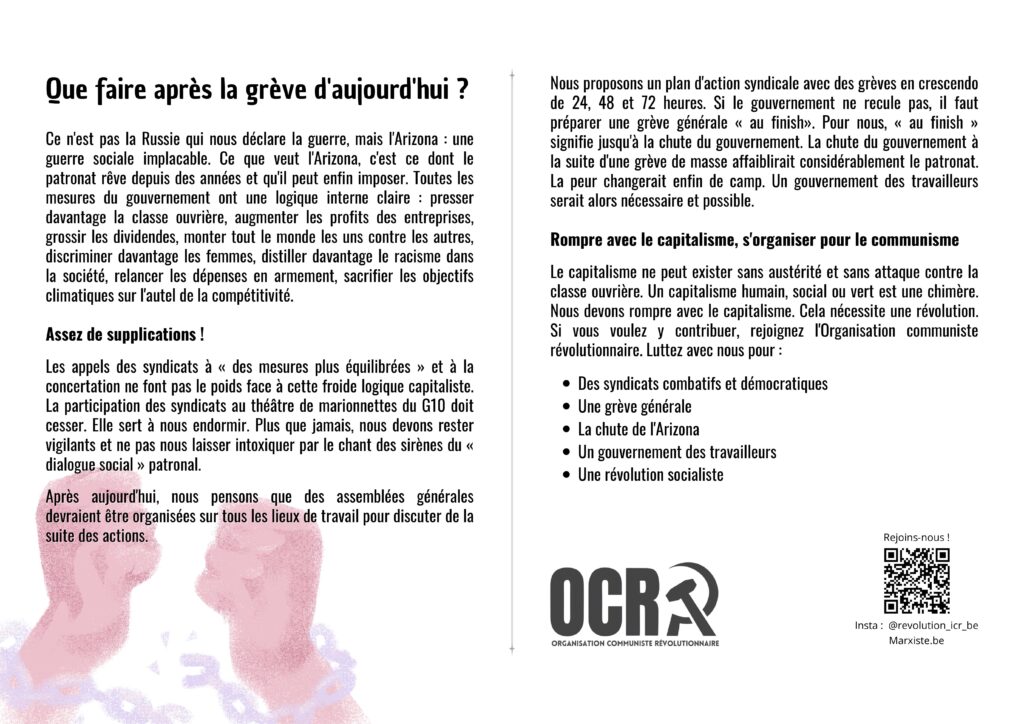 Le capitalisme ne peut exister sans austérité et sans attaque contre la classe ouvrière. Un capitalisme humain, social ou vert est une chimère. Nous devons rompre avec le capitalisme. Cela nécessite une révolution. Si vous voulez y contribuer, rejoignez l’Organisation communiste révolutionnaire. Luttez avec nous pour :